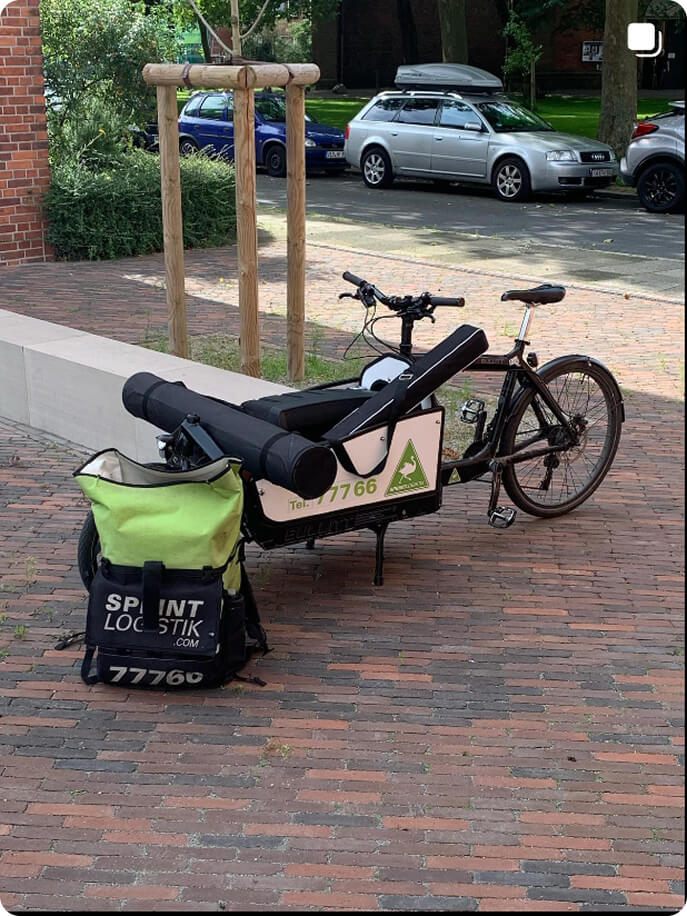 Wir transportieren Deine Sendung in Bremen und umzu. Ganz spontan, wenns brennt oder regelmäßig als Dauerauftrag. Unsere Fahrradkurier:innen und Autokurier:innen sprinten los.
